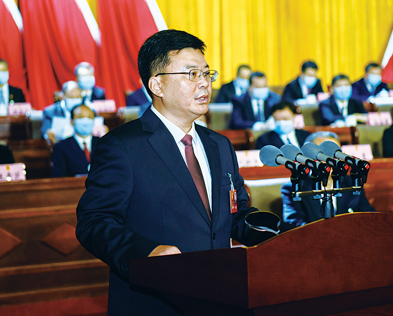 劉文勤說,過去五年,市十四屆人大常委會(huì)旗幟鮮明講政治的使命擔(dān)當(dāng)、堅(jiān)持和完善人民代表大會(huì)制度的生動(dòng)實(shí)踐、推進(jìn)人大工作和民主法治建設(shè)的豐碩成果、助力經(jīng)濟(jì)社會(huì)發(fā)展和保障改善民生的顯著成效,為我們進(jìn)一步做好新征程下地方人大工作奠定了堅(jiān)實(shí)基礎(chǔ)、提供了寶貴經(jīng)驗(yàn)、樹立了榜樣標(biāo)桿。這次大會(huì)選舉產(chǎn)生了新一屆市人大常委會(huì)組成人員,我們既感到無比幸運(yùn)、無尚光榮,又感到使命崇高、責(zé)任重大。我們一定心懷感恩、心存敬畏,把這份信任轉(zhuǎn)化為前進(jìn)的動(dòng)力,把這份鼓勵(lì)轉(zhuǎn)化為奮斗的激情,把這份重托轉(zhuǎn)化為履職擔(dān)當(dāng)?shù)膭?dòng)力源泉,團(tuán)結(jié)和依靠全體代表,夙興夜寐、勤勉工作,努力為承德發(fā)展和人民幸福竭智盡力,用忠誠(chéng)和奉獻(xiàn)向黨和人民交出滿意答卷。我們要高舉旗幟、把準(zhǔn)方向,以更強(qiáng)的毅力篤定前行。我們要緊盯目標(biāo)、助力發(fā)展,以更大的擔(dān)當(dāng)造福人民。我們要弘揚(yáng)法治、踐行法治,以更實(shí)的舉措保障善治。我們要牢記使命、拼搏奮斗,以更足的動(dòng)能砥礪前行。