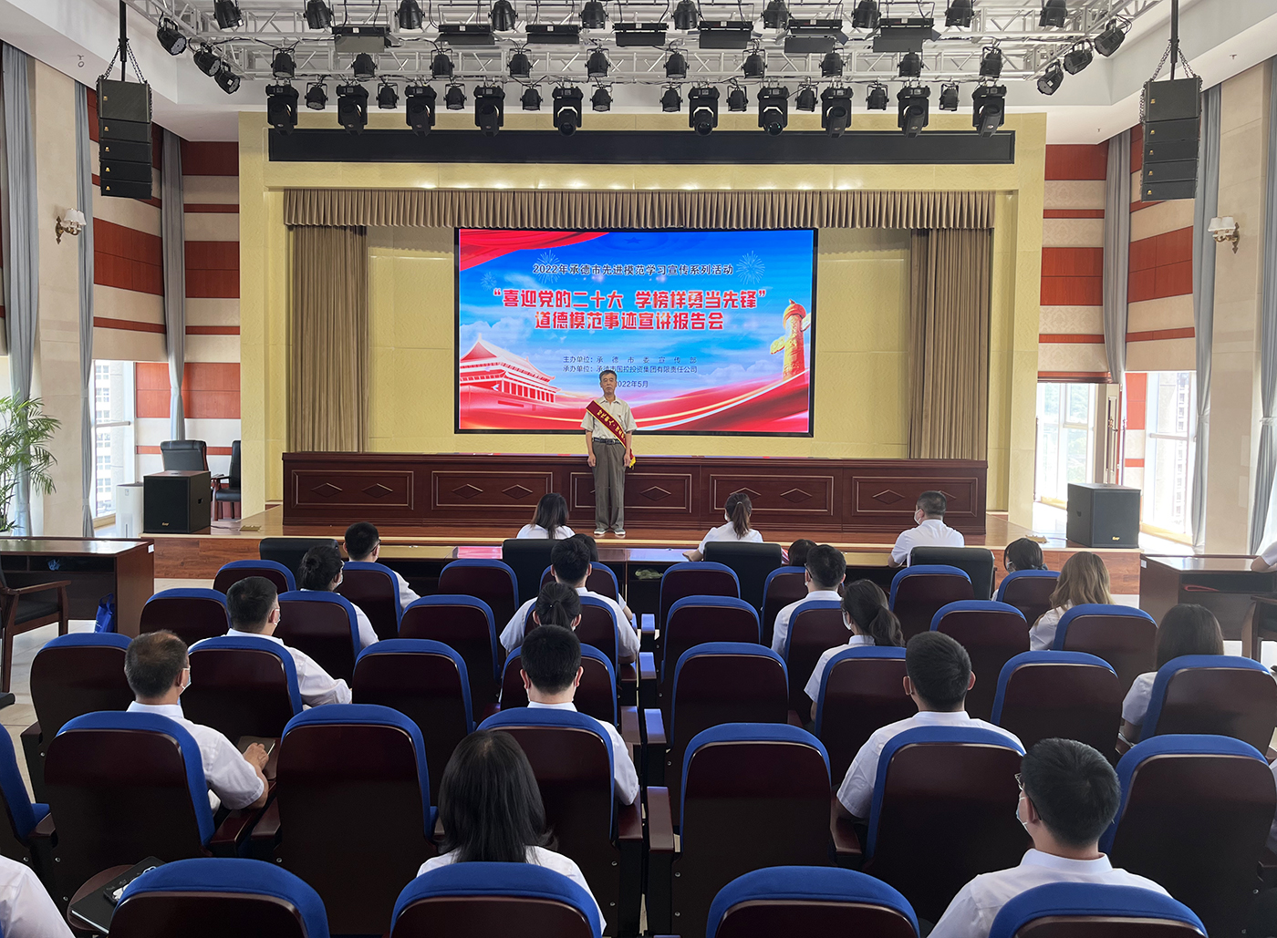 為進(jìn)一步發(fā)揮“新時(shí)代承德榜樣” “道德模范”先進(jìn)典型的示范引領(lǐng)作用,大力弘揚(yáng)塞罕壩精神,全面助力“四個(gè)再建功立業(yè)”,匯聚起公司高質(zhì)量發(fā)展的精神動(dòng)力,喜迎黨的二十大勝利召開,5月27日,由市委宣傳部主辦的“喜迎黨的二十大? 學(xué)榜樣爭當(dāng)先鋒”道德模范事跡宣講報(bào)告會在國控集團(tuán)成功舉行。