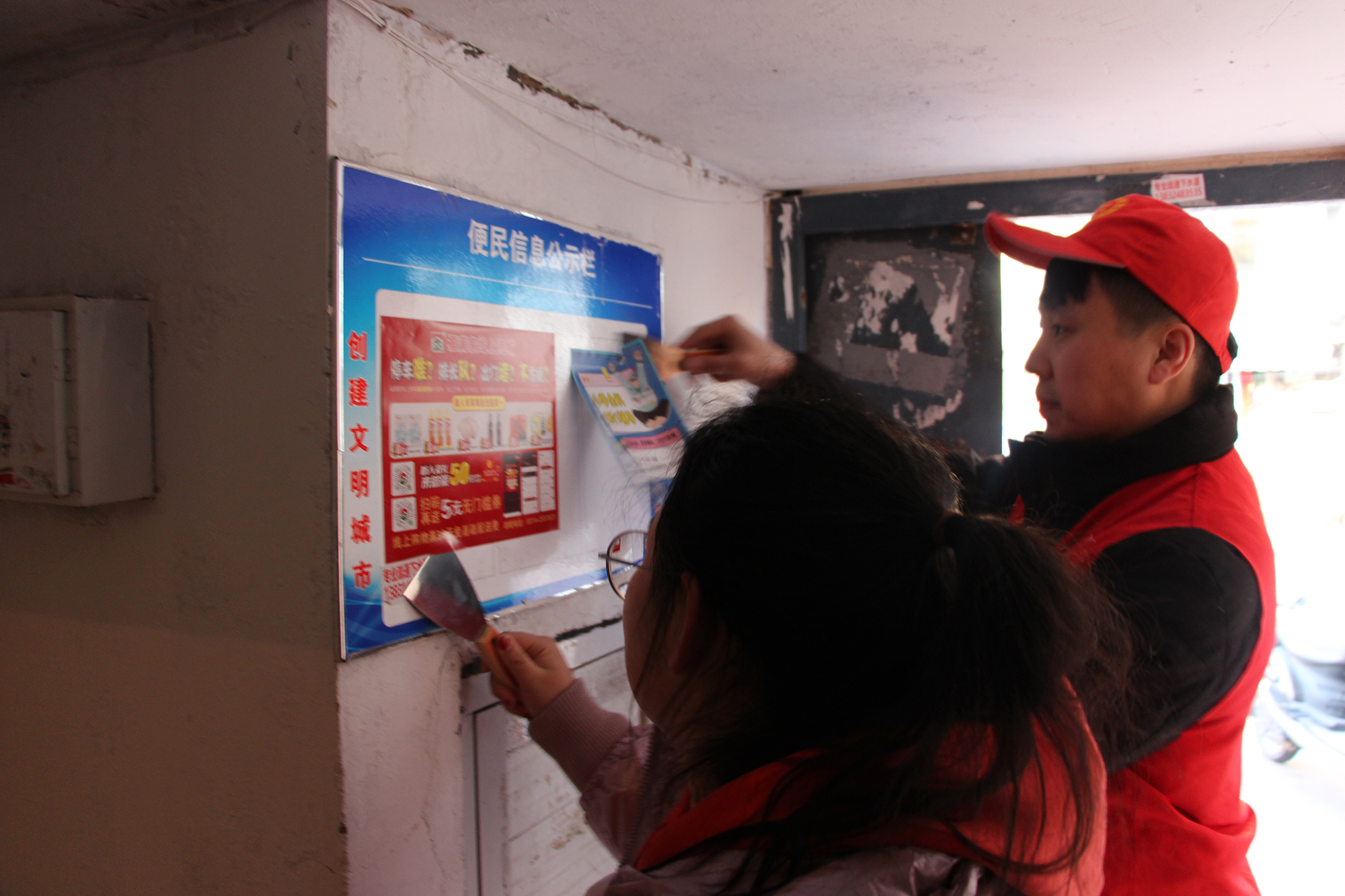 會后,集團公司與會龍山社區(qū)積極對接,安排人員分批次深入會龍山社區(qū),與社區(qū)書記現場溝通并安排部署幫建工作。志愿者們向社區(qū)居民發(fā)放黨的二十大精神宣傳手冊、對轄區(qū)內消防設施進行清潔檢查、單元樓內外非法廣告進行清除、對非機動車進行合理擺放、樓內外堆放垃圾雜物上門進行溝通,向居民講解雜物堆積的潛在危害,進一步提升了社區(qū)居民的文明意識。