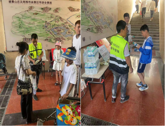 近日,受暖性高壓脊影響,我市迎來持續(xù)數(shù)天的高溫天氣,相關(guān)部門相繼發(fā)布了高溫橙色、紅色預(yù)警。市國(guó)動(dòng)辦、市國(guó)控集團(tuán)在避暑山莊門前地下人防停車場(chǎng)設(shè)置了“高溫天氣便民服務(wù)點(diǎn)”,為外地游客和本市市民免費(fèi)發(fā)放礦泉水和藿香正氣水,為出游的游客和市民提供飲水和預(yù)防中暑藥物,受到了廣大群眾的一致好評(píng)。